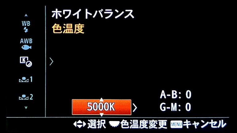 プリセットの他にも、色温度をケルビンで設定し、ホワイトバランスを調整することができます。