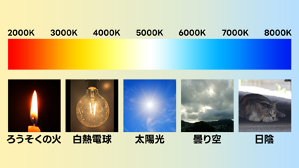 光の色は「色温度」といい、K(ケルビン)という数値で表されます。