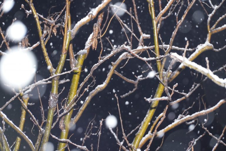 降る雪にストロボの光が反射し、丸く雪が写るようになりました。