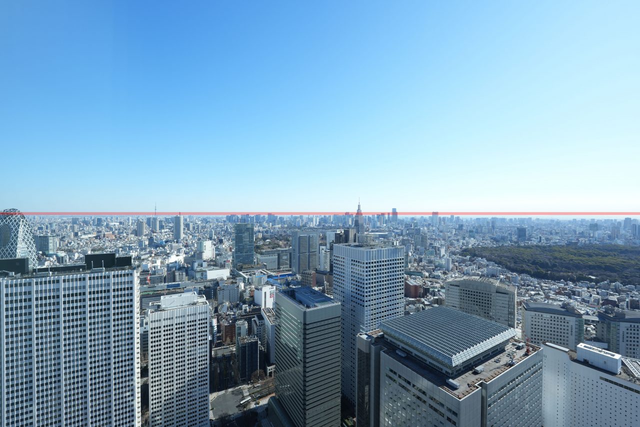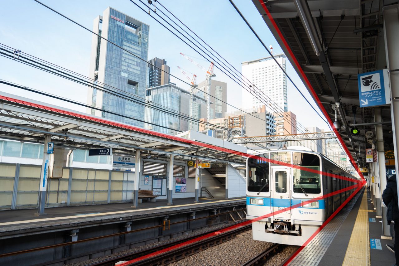 鉄道や道路など、直線的で広い空間の撮影に適している構図です。