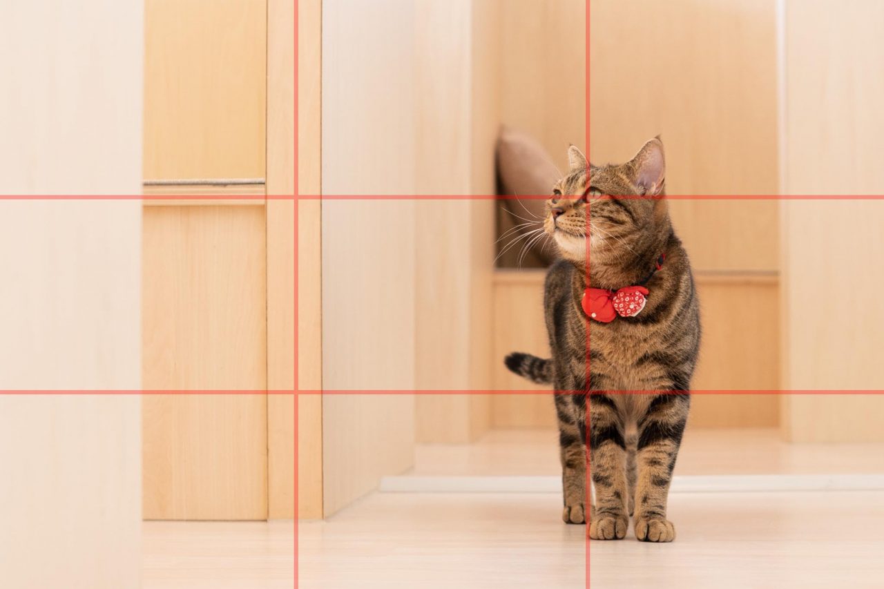 画面を水平方向と垂直方向に3等分し、その交点に被写体を配置する構図です。