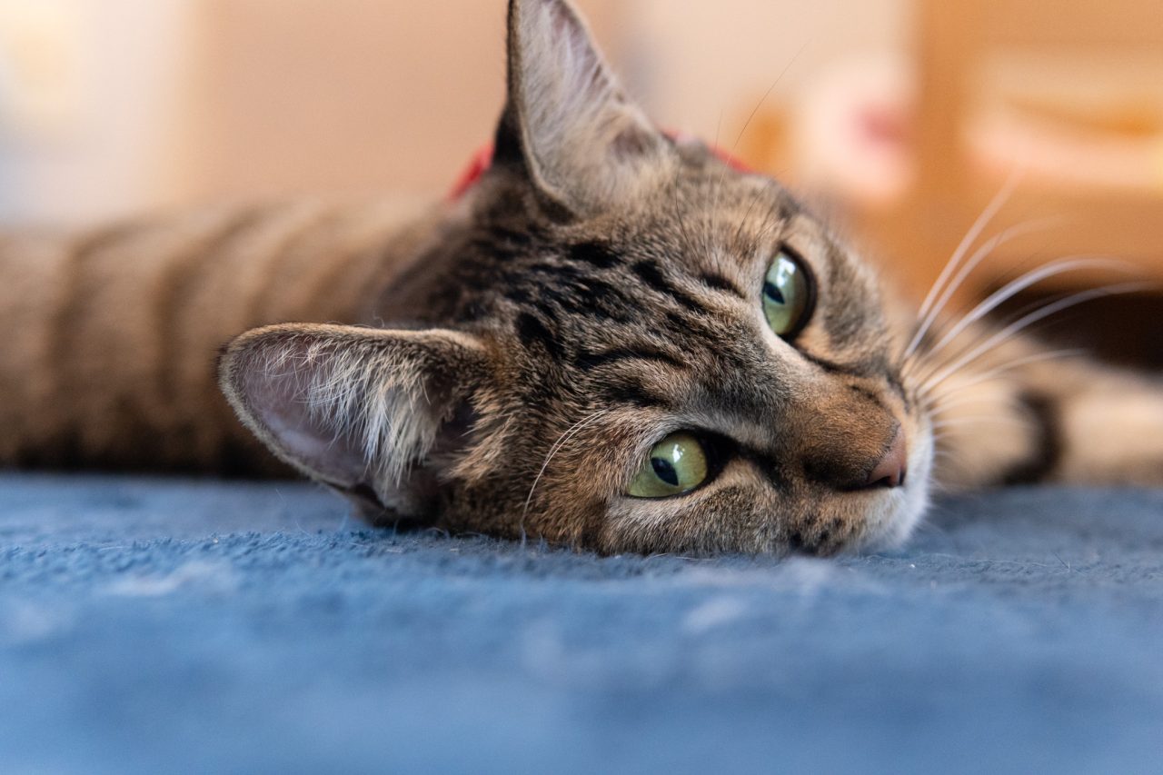 床にカメラがつくぐらいぐっと下げて、猫の視線と合わせてみましょう。
