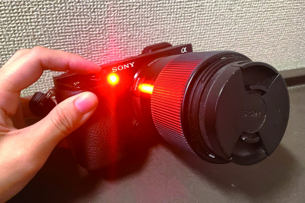 シャッターを半押しするとピントが合うまで赤い光が照射され、フォーカスのアシストをしてくれます。