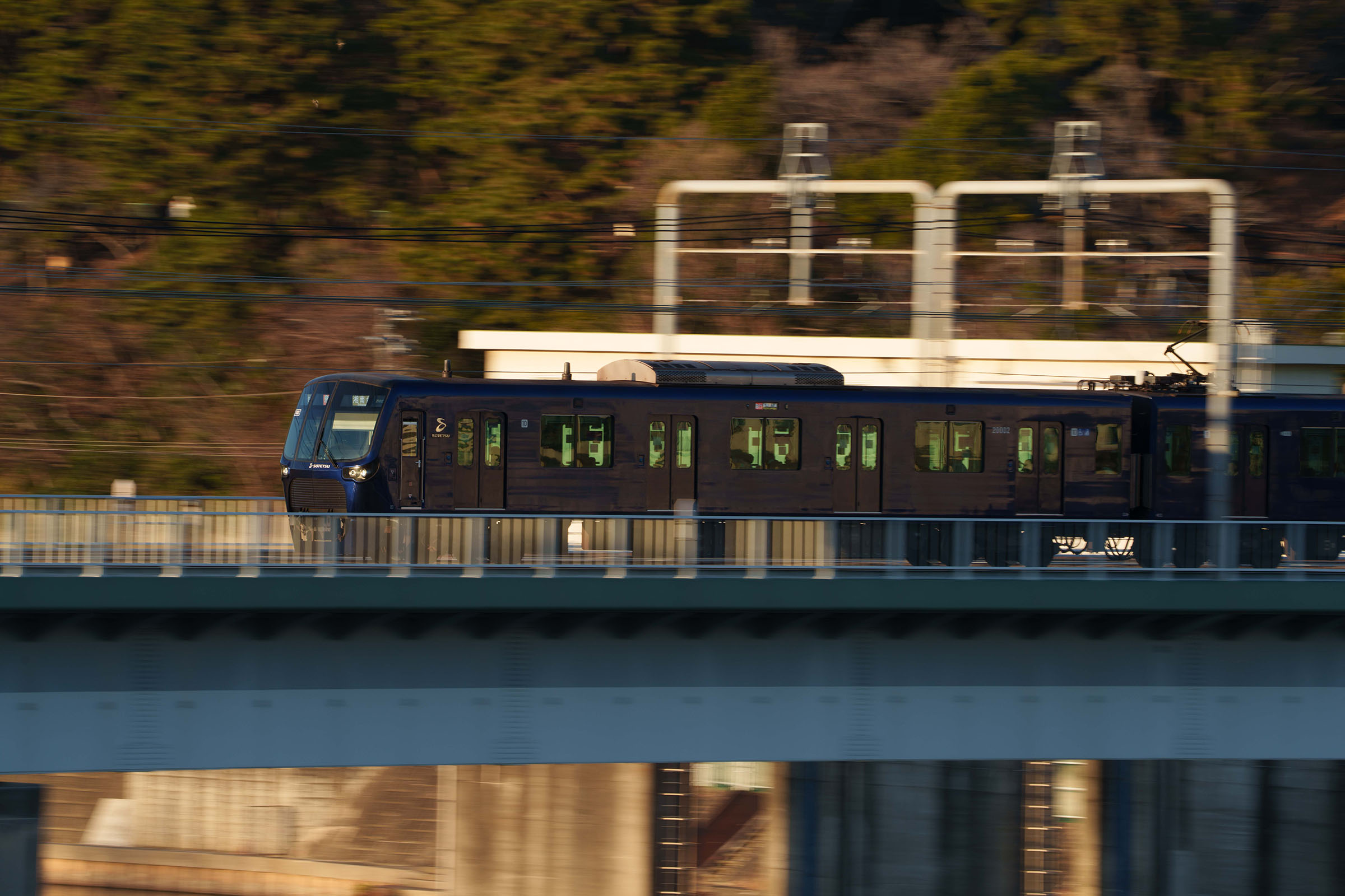 こちらは「YOKOHAMA NAVYBLUE」と呼ばれる濃紺色を纏った相鉄20000系を撮影したものですが、適正露出を確保するのにとても苦労しました。