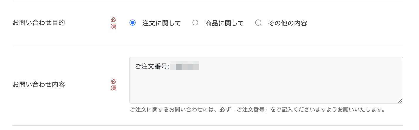 - 4) お問い合わせ内容欄に“ご購入時の注文番号”をご入力いただき送信ください。
