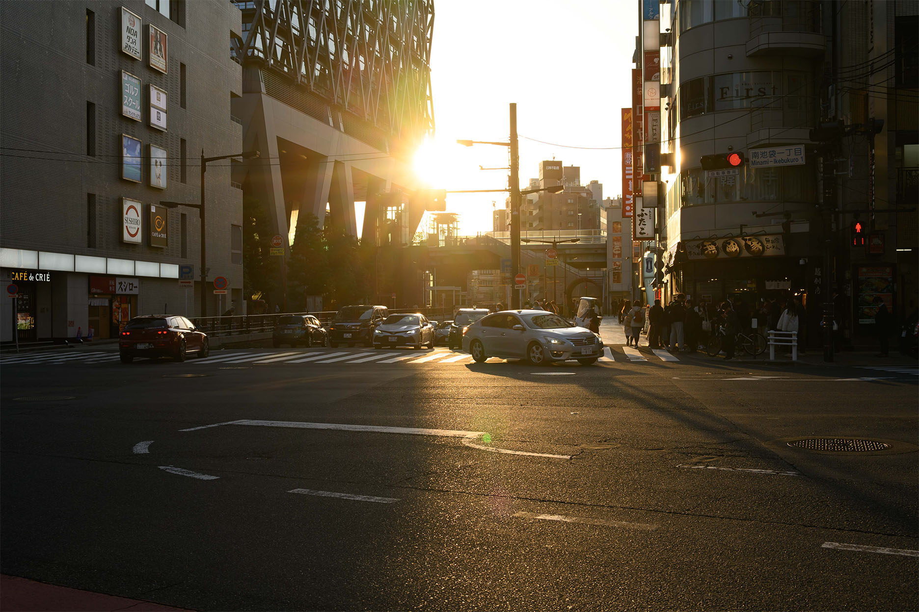 ビルの窓ガラスに反射した光がそのまま光源となり、白くなってしまっているほか、絞っているので光芒も出ているのがわかります。