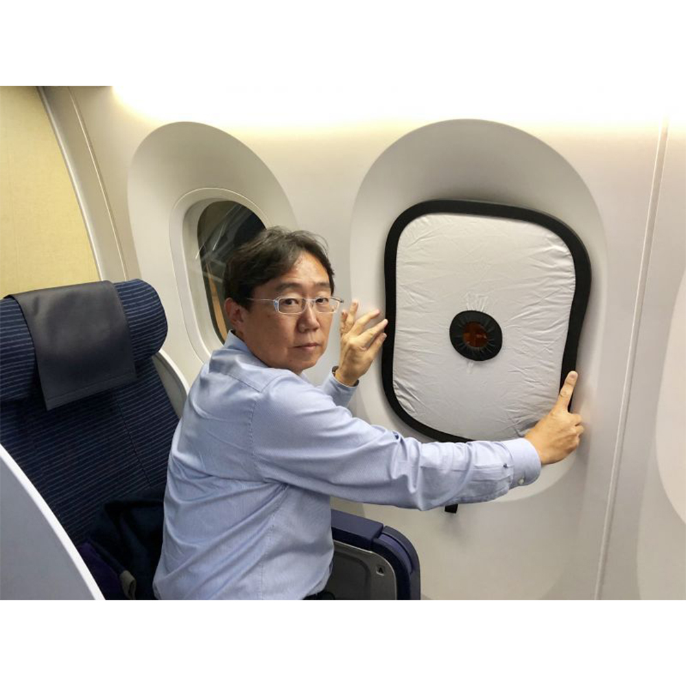 航空機ボーイング787の大きい窓ぴったりの長方形です。