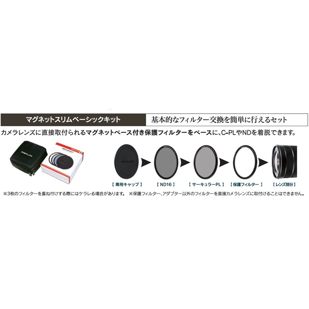 ※こちらのキットは「マグネットベース付きレンズ取付け用スリムレンズ保護フィルター」がベースになっています。「マグネットスリムレンズアダプター」をお求めの場合は別売の単品商品をお買い求め下さい。