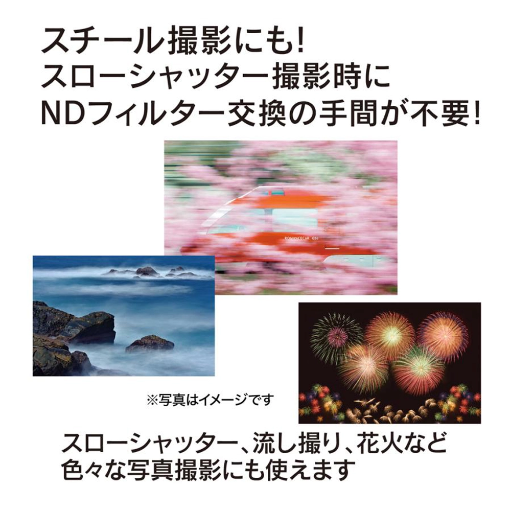 - 可変NDフィルター(ND2.5〜500)