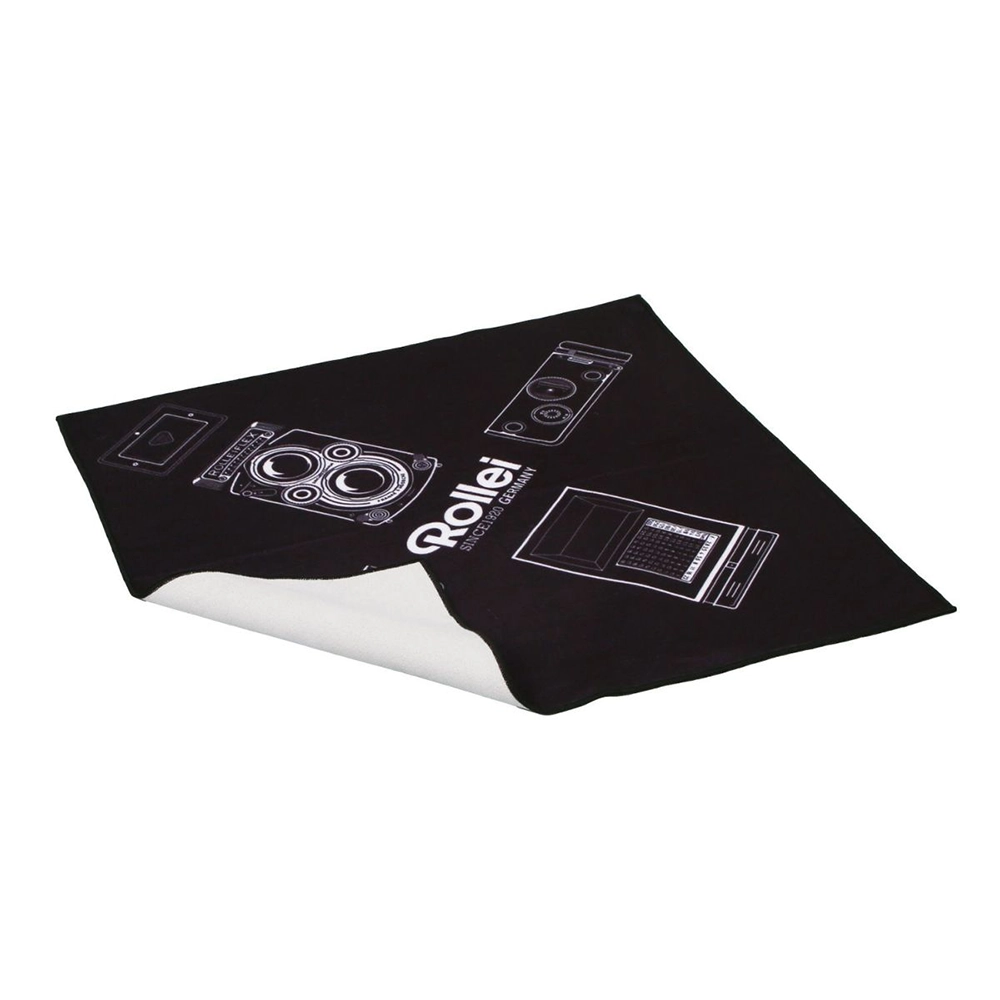 お馴染み[ROLLEIFLEX]ボディをデザインしたカメラクロスです。生地の表面と裏面にそれぞれ特殊な素材を使っており、接触するとしっかりくっつきます。カメラ以外にもスマホやタブレット、ノートPCなどを包むのにも便利です。