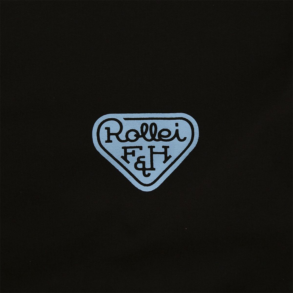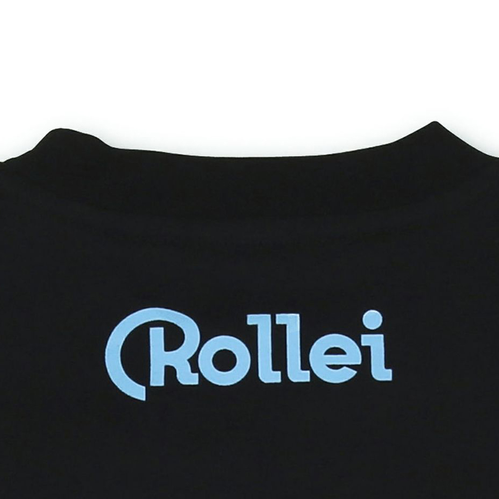 胸元にROLLEIFLEXの三角ロゴをワンポイントで配置。背中にもクラシカルなRolleiロゴがプリントされています
