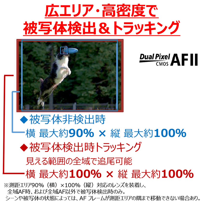 高速・高精度なAFを実現するEOS Rシステム独自の機構、デュアルピクセルCMOS AF IIを搭載。被写体を画面の隅に配置しても、高精度かつスピーディーにAFを実現します。
