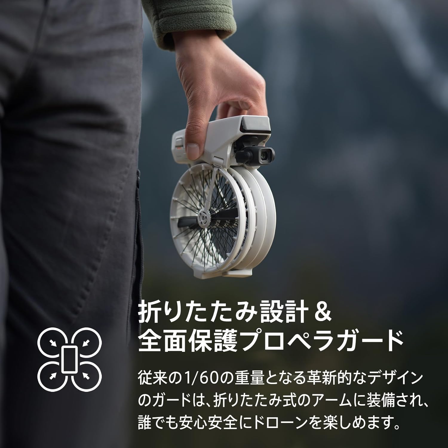 安全な飛行のための折りたたみ式の全面保護プロペラガードと、夜間でも自動ブレーキが可能な3D赤外線検知システムを装備。