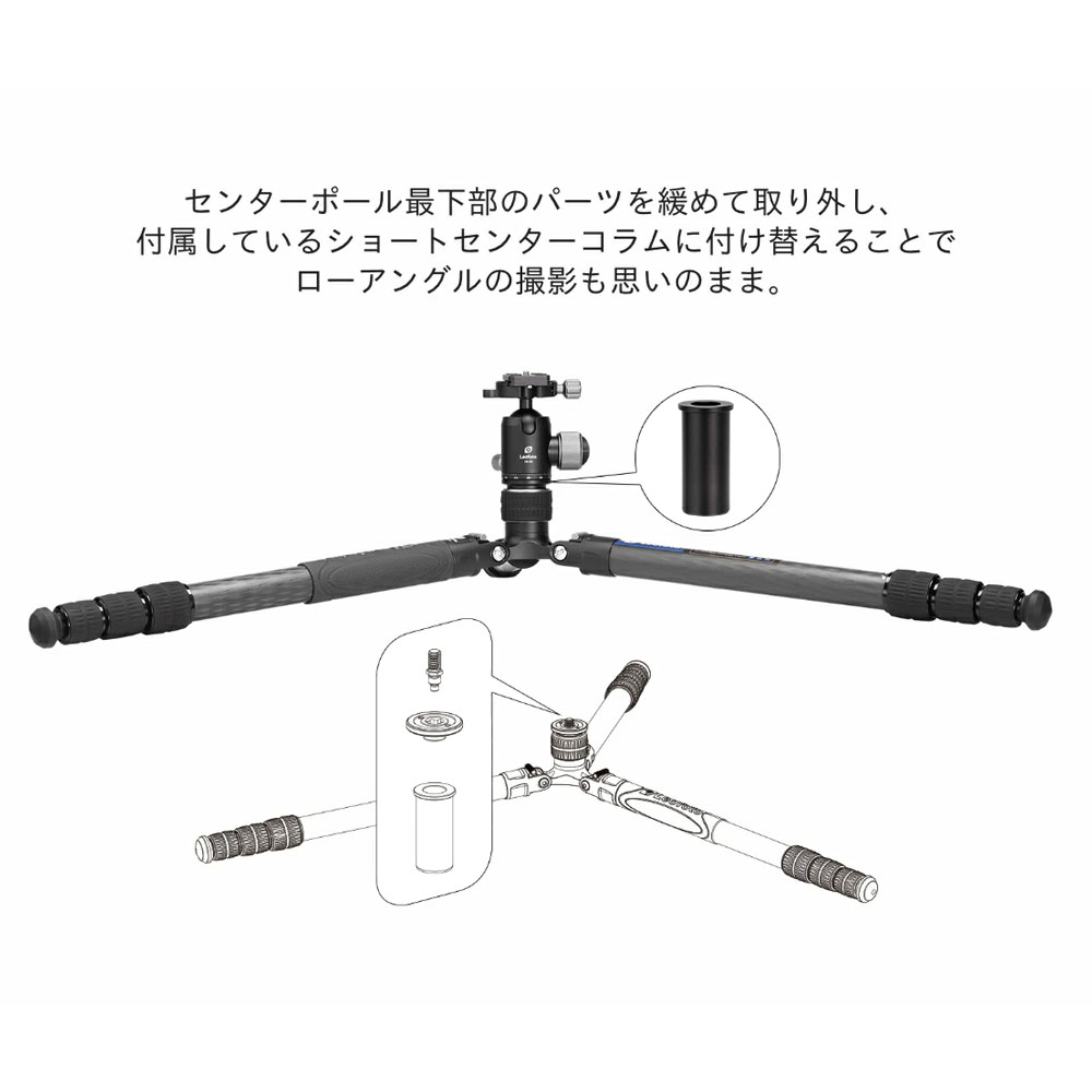 - センターポールをローポジション用センターコラムに交換し、低位置撮影にも特化。