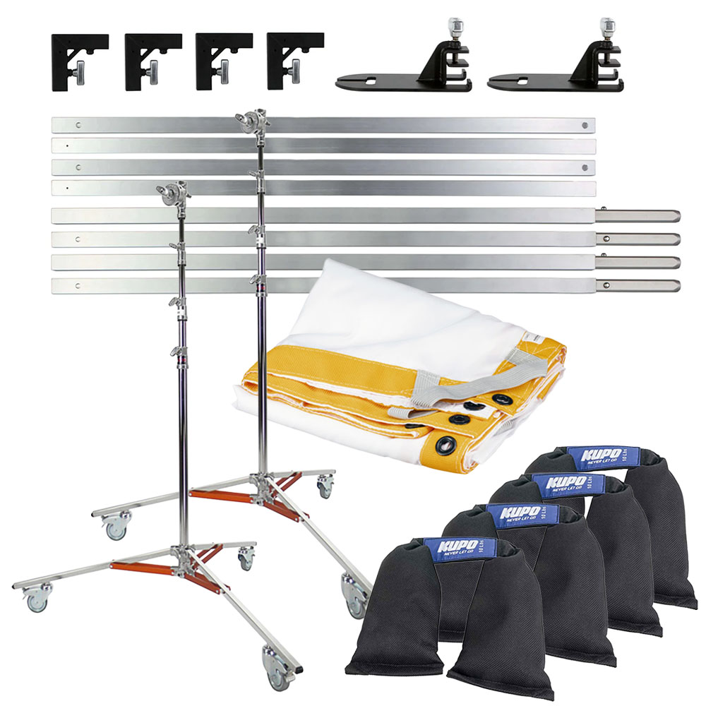 ストロボやHMI、外光をディフューズする事で、大きく柔らかい2.4mx2.4mの光源を作る事が可能。大きさも適度で持ち運びも楽です。 紗幕の周りに鳩目が等間隔でついており、付属する紐で紗幕を張る事もできます。