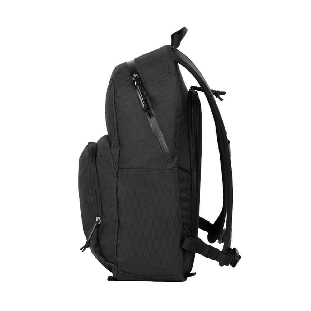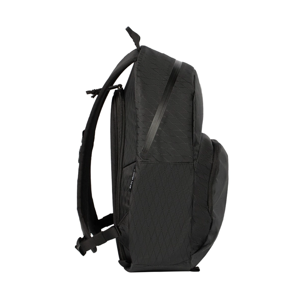 DuraDiamond HTナイロン、BloomカーボンニュートラルTPEフォーム、防水TPU Sタイプ織りジッパー。そして、精密なレーザーカット&RF溶接されたサブパネル、超音波仕上げされたジッパーとウェビング、コンピュータ自動縫製によるキークネクション。素材科学と世界クラスの製造技術がRju AIRのシンプルなデザインの基盤を作り上げています。さらに、2000時間以上にわたる民族学的製品研究(115人以上の多様なグループによる950回以上の冒険の検証)を経て、Rju AIRは砂漠、雨林、地下鉄、さらにはスーパーなど、あらゆる環境においても、ギアを安全かつ確実に守る完璧な「ステルスパック」となっています。