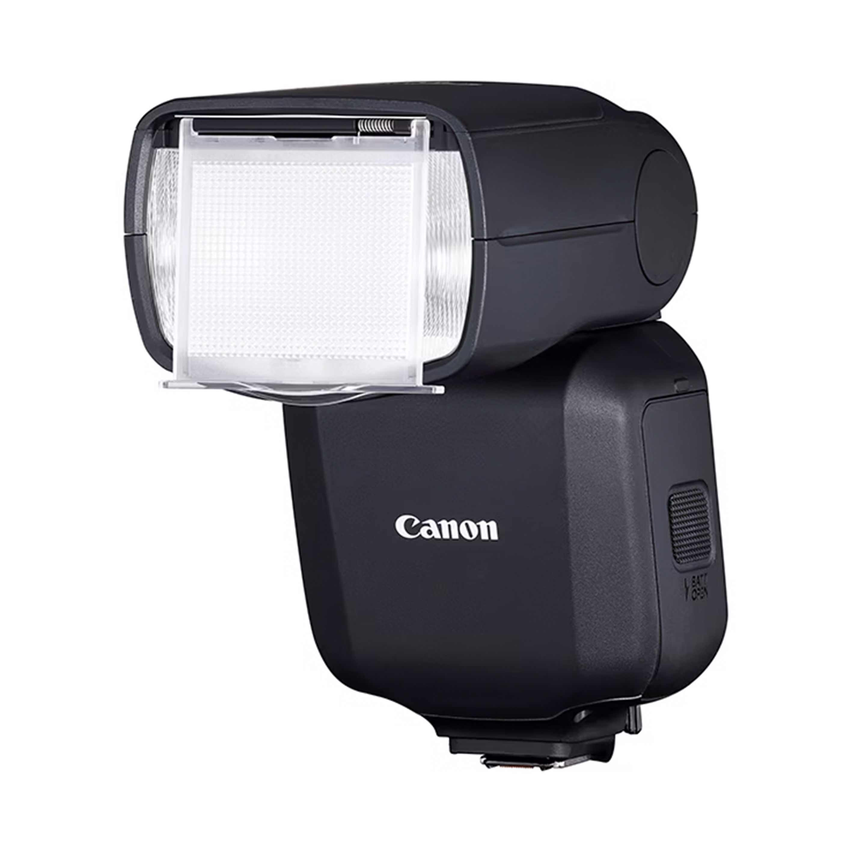 スピードライト EL-1と同様、キヤノン製スピードライトシリーズ最大※1のガイドナンバー60※2を実現。照射角は、広角側がワイドパネルなしで24mm、望遠側が200mm(35mm判換算)までカバー。ワイドパネル使用時は、焦点距離14mmにも対応。超広角レンズでも、画面の広範囲に投光します。