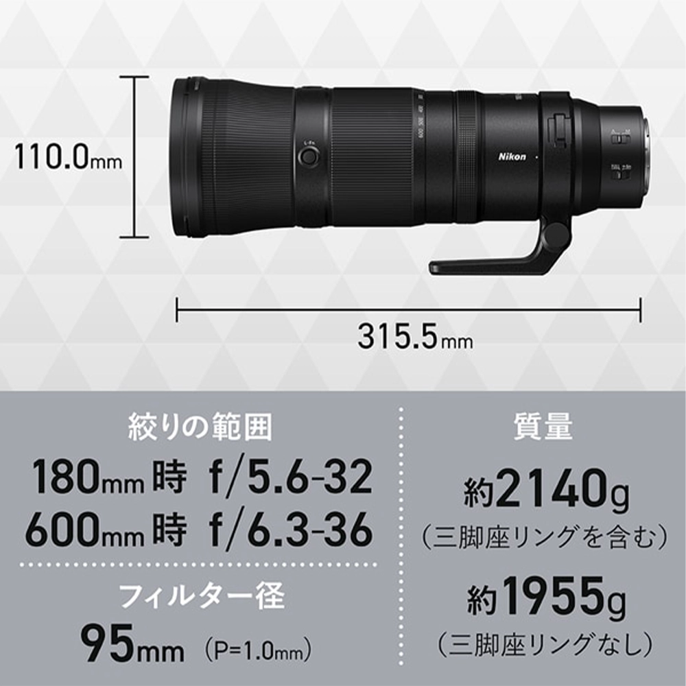 NIKKOR Z 180-600mm f/5.6-6.3 VR (ニコンZマウント) 1x