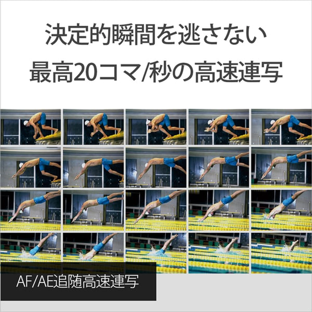 メモリー内蔵35mmフルサイズ積層型CMOSイメージセンサーを搭載。進化した画像処理エンジンBIONZ Xとの組み合わせにより、最高約20コマ/秒のブラックアウトフリー連続撮影や、最大60回/秒の演算によるAF/AE追随、最高1/32000秒での歪みを極限まで抑えるアンチディストーションシャッターを実現。一眼レフのメカ構造の性能と限界を超える新次元の高速性能を備えています。