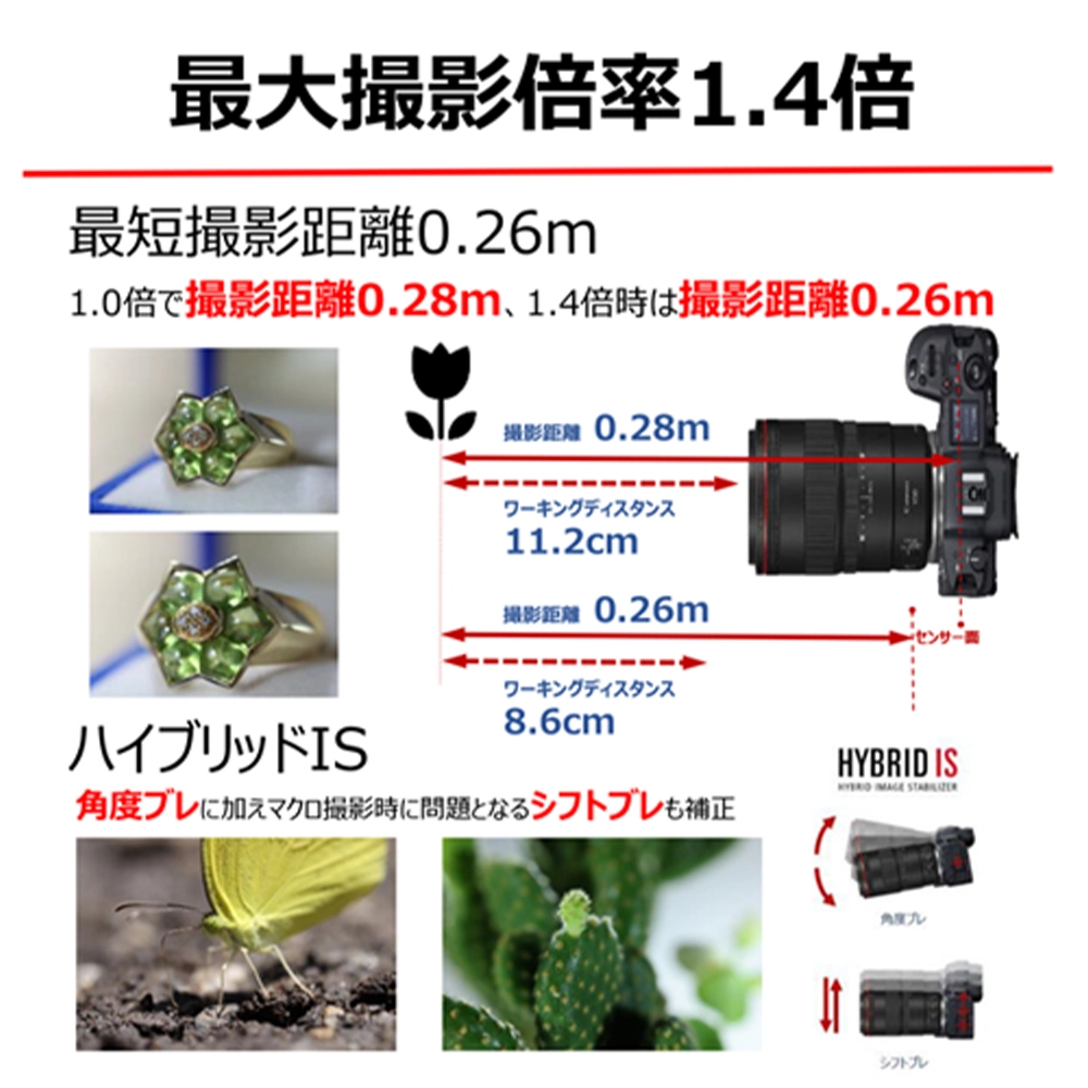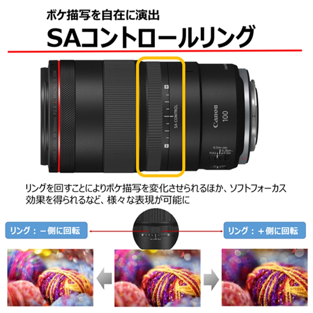 球面収差を変化させることができる「SAコントロールリング」をキヤノンとして初めて採用。ユーザーの好みに合わせた自由なボケ描写を実現。最大撮影倍率1.4倍のマクロ撮影と合わせて、多様な写真表現を気軽に楽しむことが可能。
