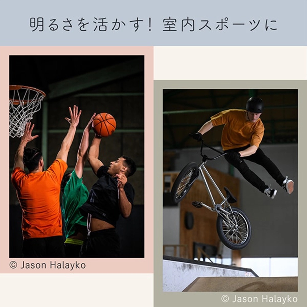 明るい開放F値を活かして、ISO感度を抑えつつ速いシャッタースピードに設定可能。室内スポーツで動く被写体をブラさずに撮ることができるほか、夕暮れ時などでもノイズを抑えたクリアーな写真が撮れます。
