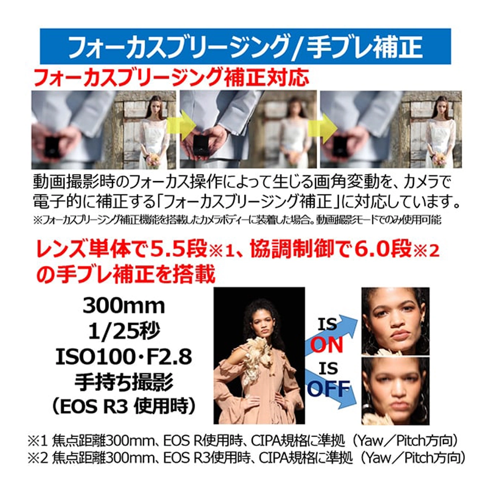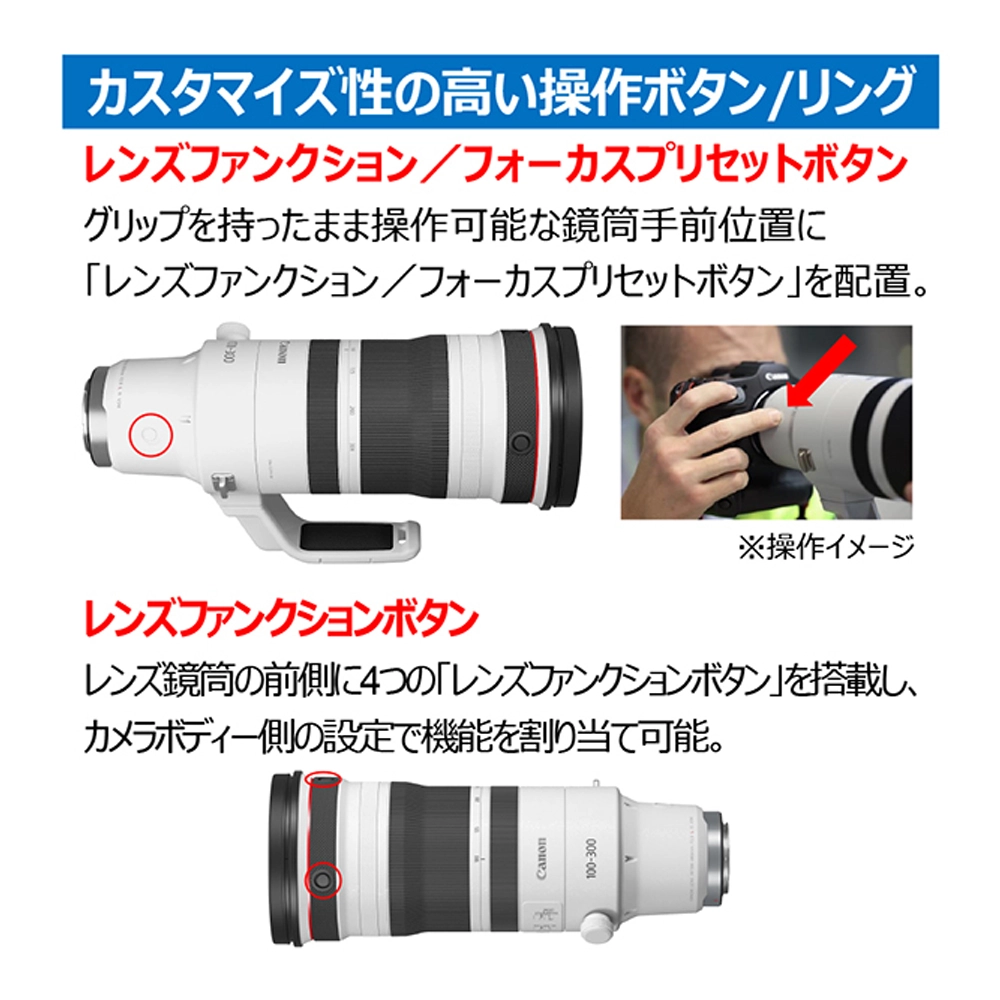 EOS Rシステムの特長を最大限に生かした最新の光学設計により生まれた、フラッグシップズームレンズのRF100-300mm F2.8 L IS USM。ズームレンズながら、単焦点Lレンズに匹敵する画面全域の高画質を実現しました。エクステンダー使用時においても、超望遠Lズームレンズ単体と並ぶ画質をキープしています。