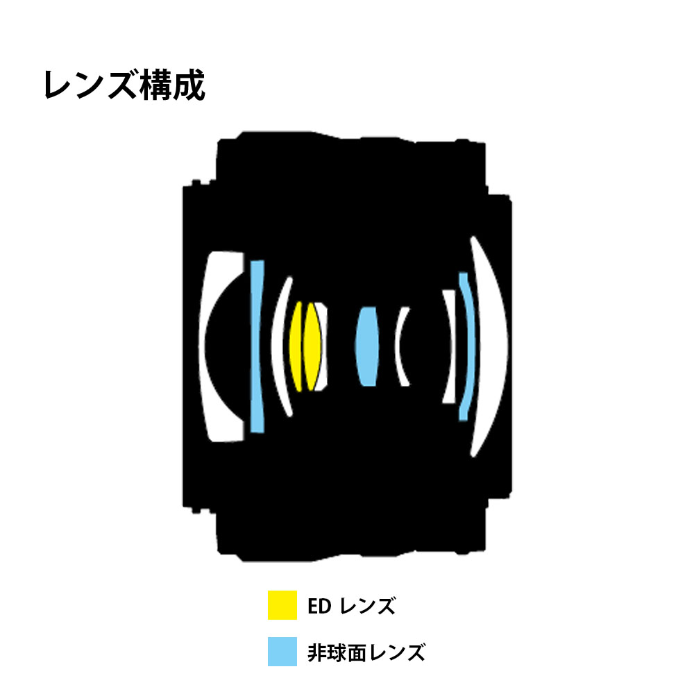 EDレンズ(2枚)の採用で、至近から無限遠まで軸上色収差を効果的に補正。ピント面で色にじみのない、シャープな描写に貢献しています。