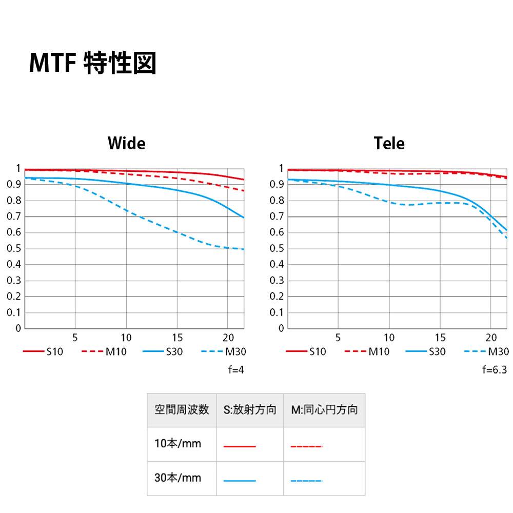 - f/4(焦点距離24mm)、f/6.3(焦点距離50mm)