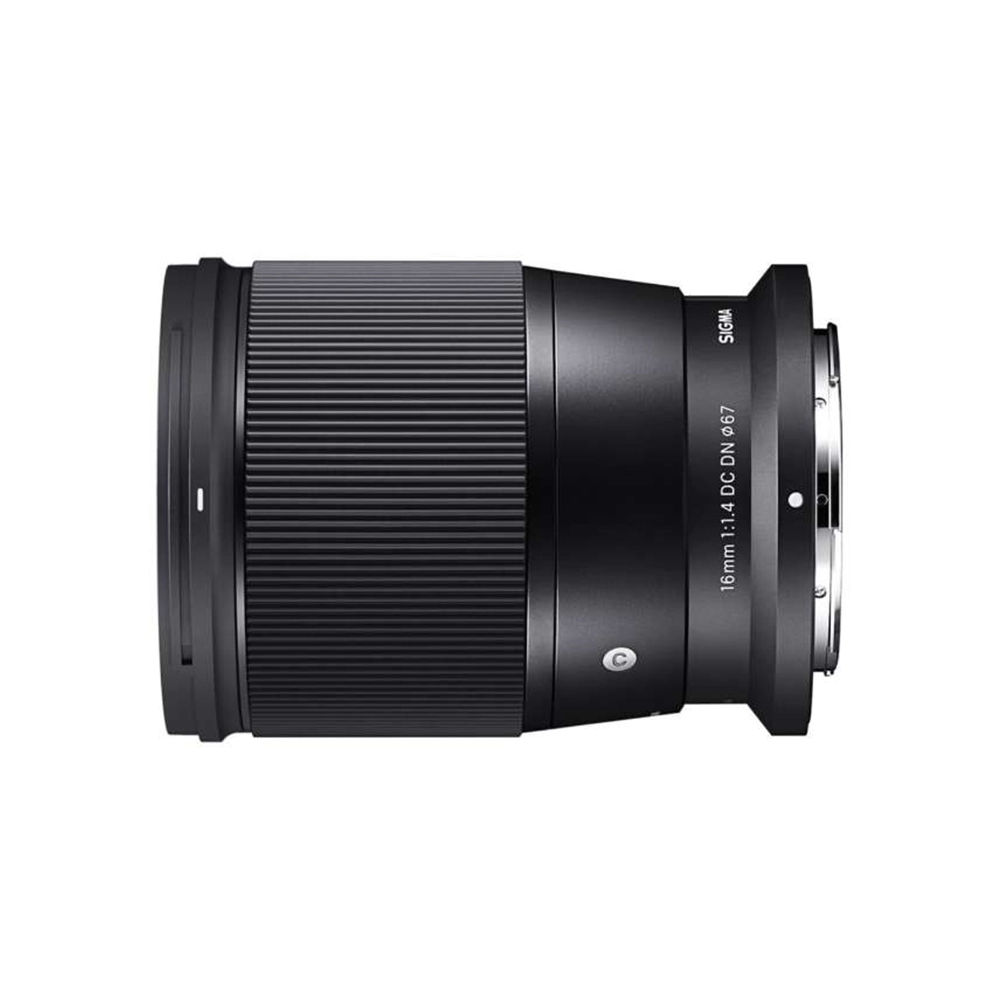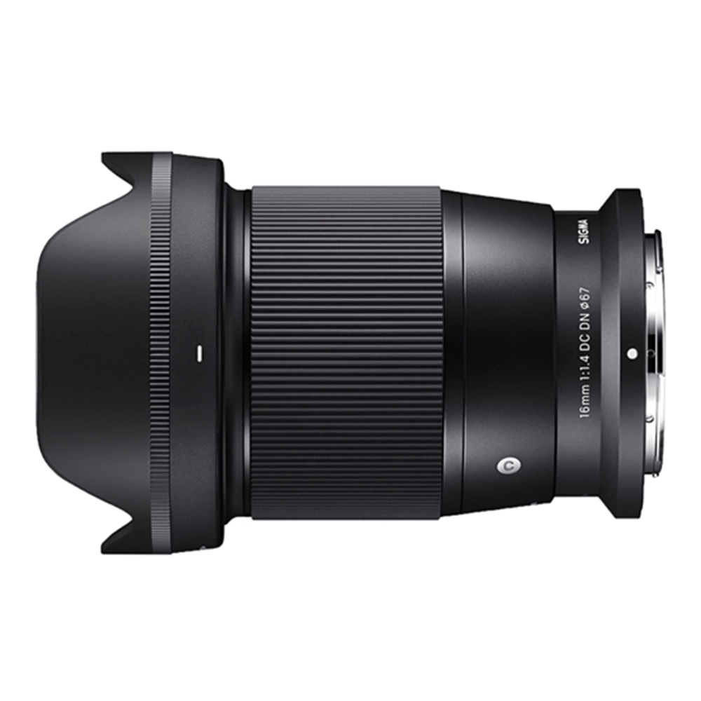 Sigma 16mm F1.4 DC DN | Contemporary は、ショートフランジバックを採?した?型軽量なカメラボディで使?する際のバランスを考えてコンパクト化を実現。動画撮影でも快適なAFを実現するためにフォーカス群の設計を考慮するなど、?画質を最優先にしながらも?型化と 快適な操作性を共に実現しました。歪曲収差はデジタル補正を採?する など、最先端のテクノロジーを投?しています。