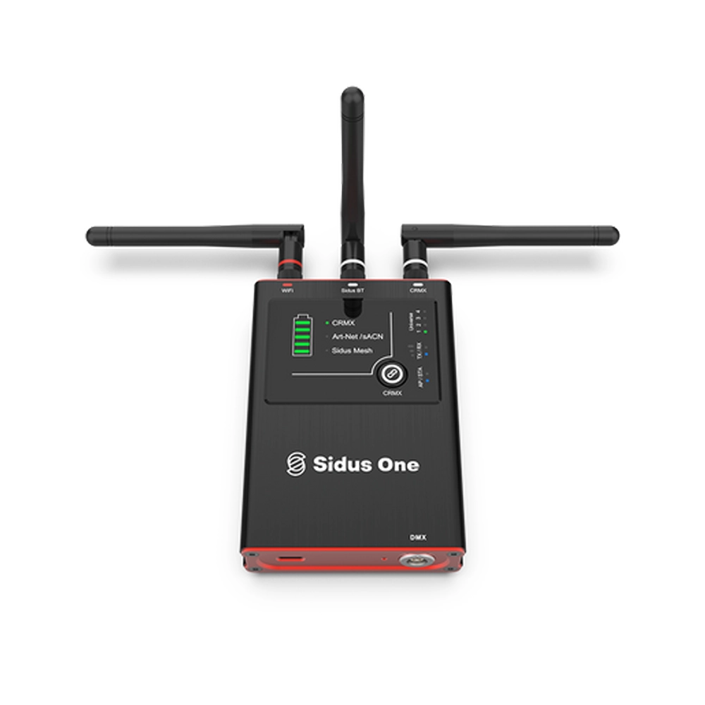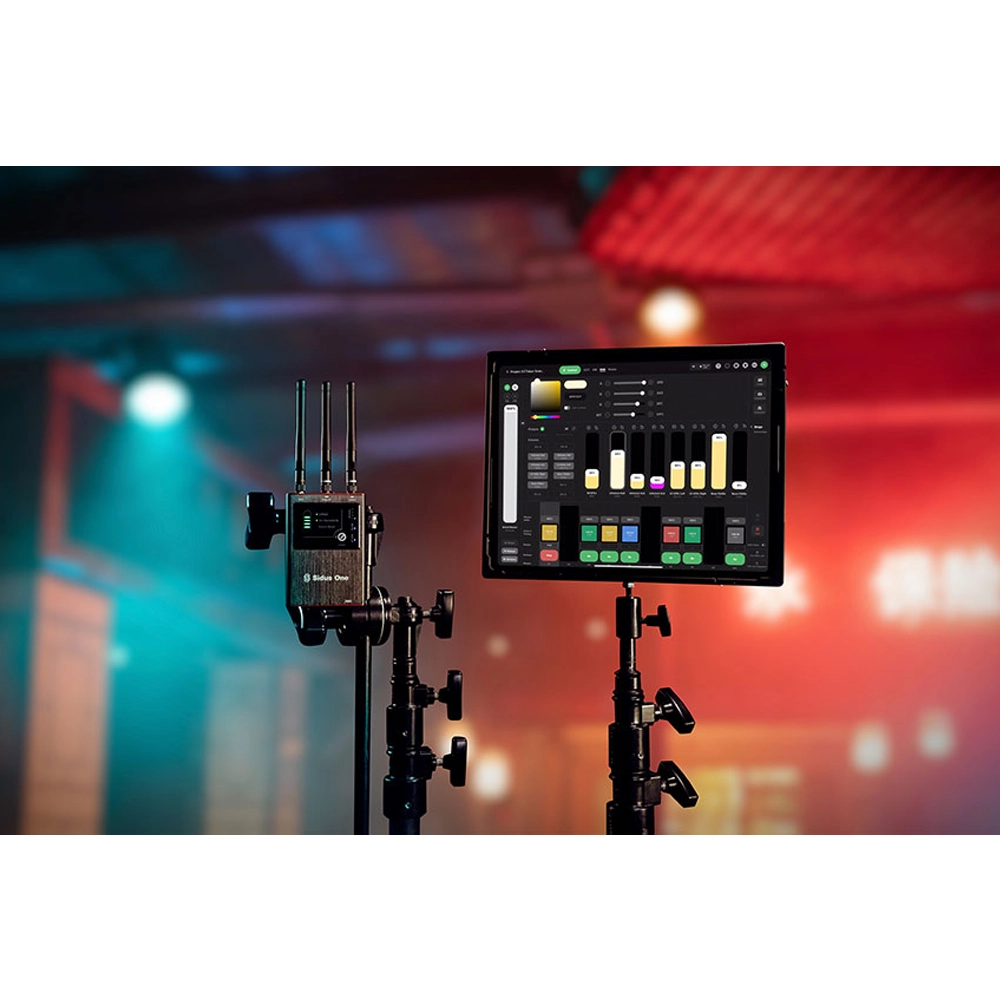DMX、CRMX、sACN、Art-Net、Bluetooth Mesh - 必要なすべての接続が1つの小さな充電式ボックスに備わっています。あらゆる照明機材を接続し、Sidus Link Proアプリで操作可能。
