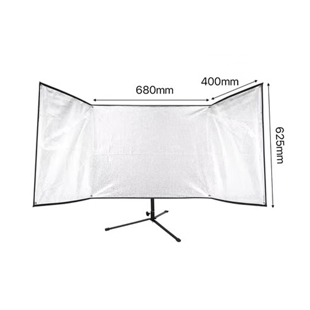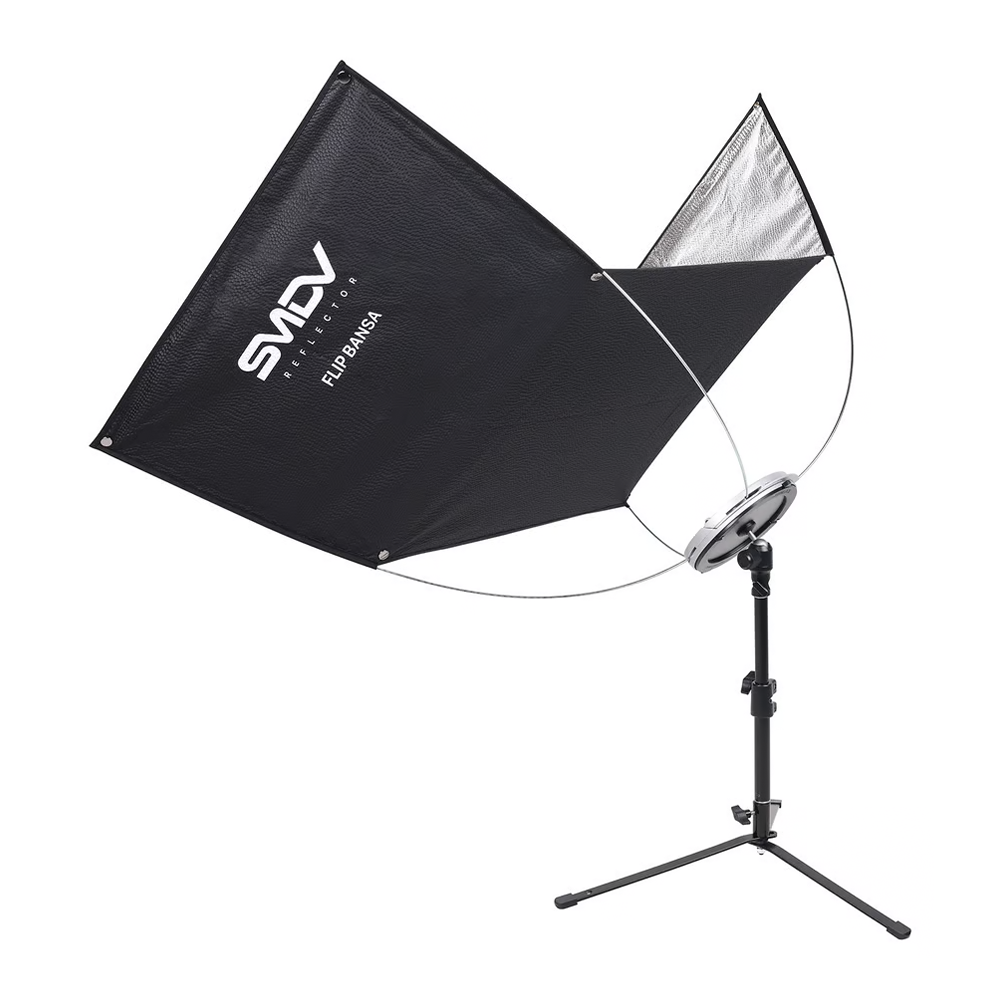 SMDV フリップ バンサ リフレクター 1480 x 625 mmは、首や顔に均一にバランスよく光を反射して柔らかな陰影を作ることで、顔のラインやシワを和らげ均一な肌の質感を美しく演出します。また、キャッチライトも自然な曲線に沿って加えられます。