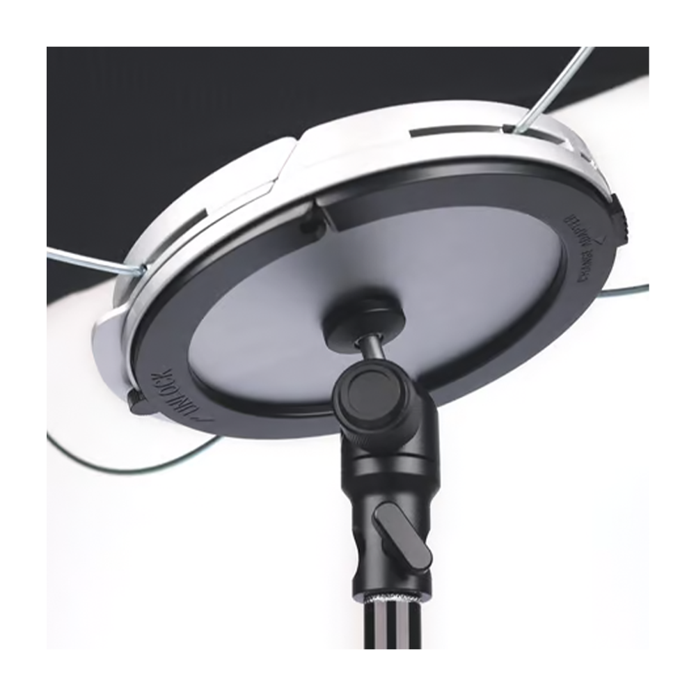 FJ-Pro ボールヘッドはフリップバンサリフレクター用に作られたディフューザーと付属のスタンドをつなぐアタッチメントです。360度回転できるので、あらゆる角度に便利に調整でき、どの方向にも自由に移動できます。フリップリフレクターを取り付けるときは、上部の取り付けネジを緩めて締め付けます。