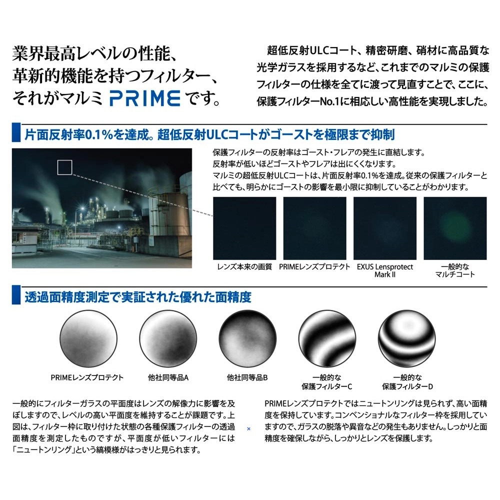 マルミの新しいブランド「PRIME」とは、 従来の商品に比べ、性能面で1歩も2歩も秀でた特徴を持ち、業界最高レベル、或いはそれをも凌駕する性能、革新的機能を持つ商品に与えられるマルミの新しいブランドです。TOPプロをして欲しいと言わしめるフィルター、それがマルミPRIMEです。PRIME Lens Protectは、日々先鋭化するカメラレンズの描写性能を余す事無く伝えきる事に特化しながら、しっかりとレンズを保護します。