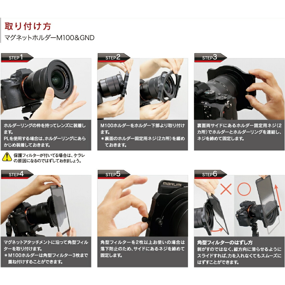 専用マグネットフレームに対応した構造のため、濃度・種類の異なる角型グラデーションNDフィルター(GND)やNDフィルターがワンタッチで着脱、重ね付けができます。