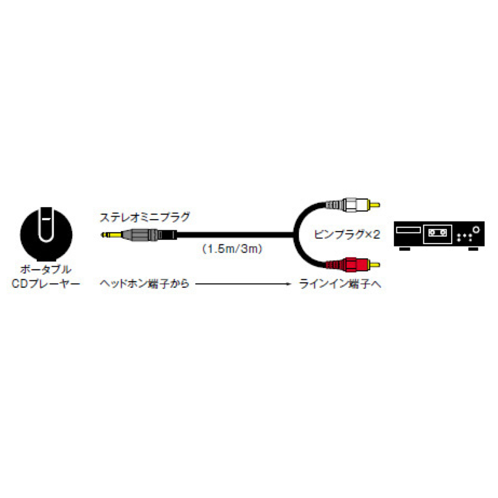 ウォークマンや小型ステレオカセットコーダーのヘッドホン端子からテープデッキやステレオラジオカセットのラインイン端子に接続して録音再生するときに使用。