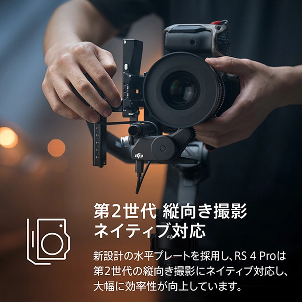 新設計の水平プレートを採用し、RS 4 Proは第2世代の縦向き撮影にネイティブ対応し、大幅に効率性が向上しています。追加のアクセサリーは必要なく、水平プレートを外して、そのプレートを垂直位置にしっかりと取り付けることにより、縦向き撮影に簡単に切り替えることができます。