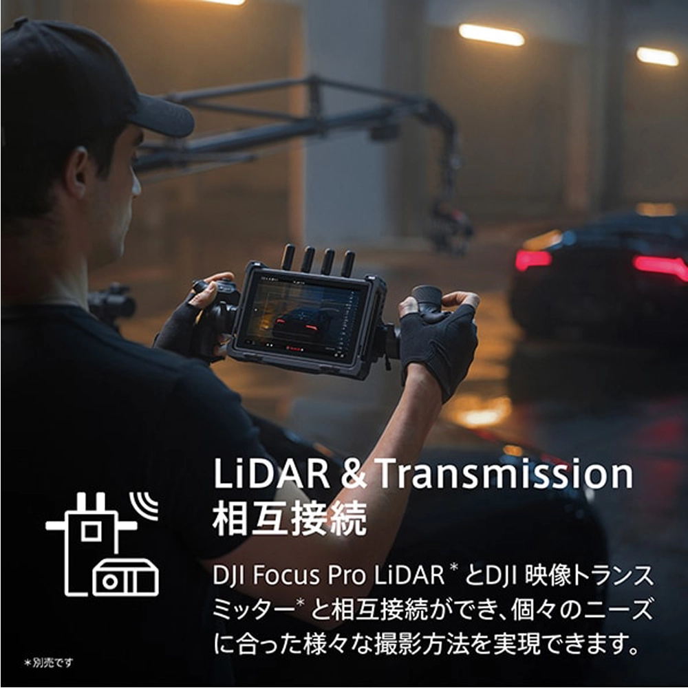 - Roninシリーズ アクセサリー (RSA)/NATOポート、1/4-20 取り付け穴、コールドシュー、映像伝送/LiDARレンジファインダーポート (USB-C)、RSSカメラ制御ポート (USB-C)、フォーカスモーター ポート (USB-C)