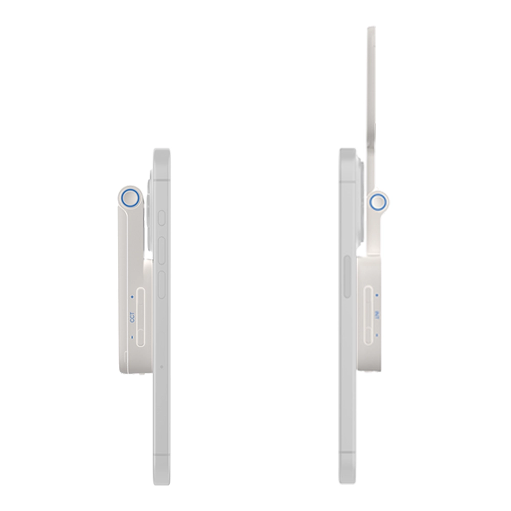 Apple社MagSafeに対応、iphoneなどのスマートフォンに直接取り付けて使用できます。また、付属しているマグネットアダプターステッカー(シール状)を使用すれば、マグネットを搭載していないスマートフォンなどのあらゆるデバイスにも使用することができます。