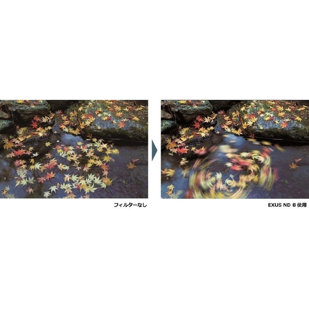 EXUS NDシリーズはニュートラル性がきわめて高く、色再現性に優れ、被写体の色彩に影響を与えることなく光量だけを減少させます。明るい場所でのスローシャッター撮影時に露出オーバー(白トビ)を防ぎ、水流を幻想的に表現する事ができます。