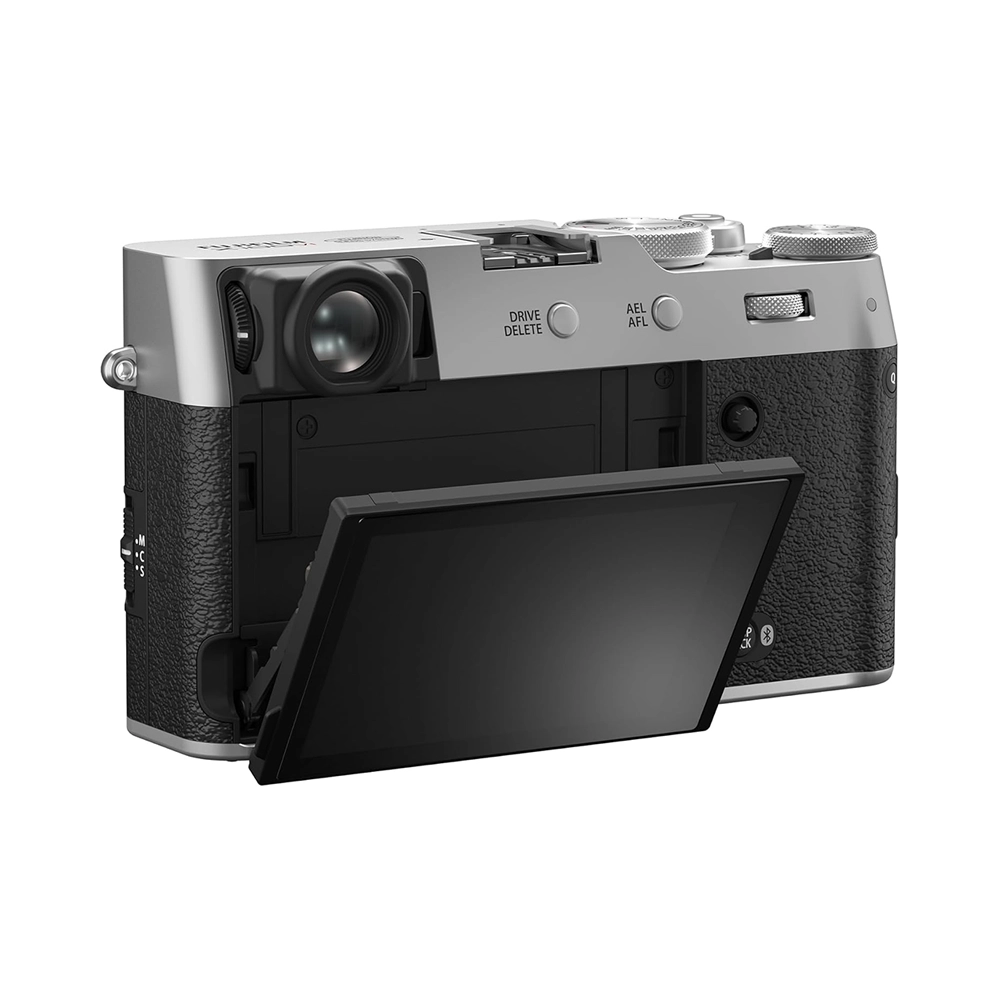 チルト式フラット液晶モニターを搭載。収納時はボディ背面と完全にフラットになり、100VIのデザインに完璧にマッチします。ハイアングル時のチルト角度が前機種X100Vの30°から45°に改善、機能性が向上しています。