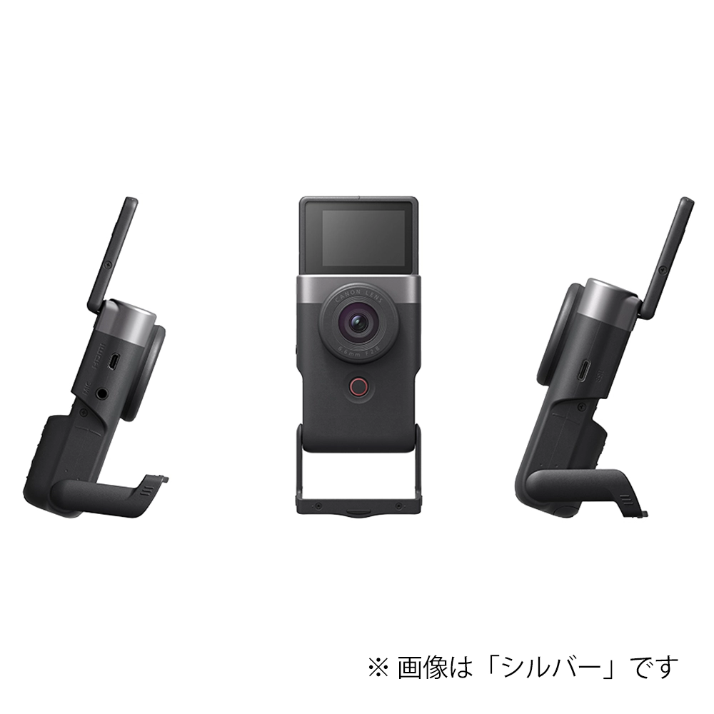 PowerShot V10は、スタンドが内蔵されています。スタンドは-30〜+30°(ボディが垂直な状態を0°とした場合)の範囲で調整可能※1です。三脚を持ち歩かなくても、本体1つで撮りたい角度からの置き撮りが可能。スタンドを出して、グリップ代わりにもなります。