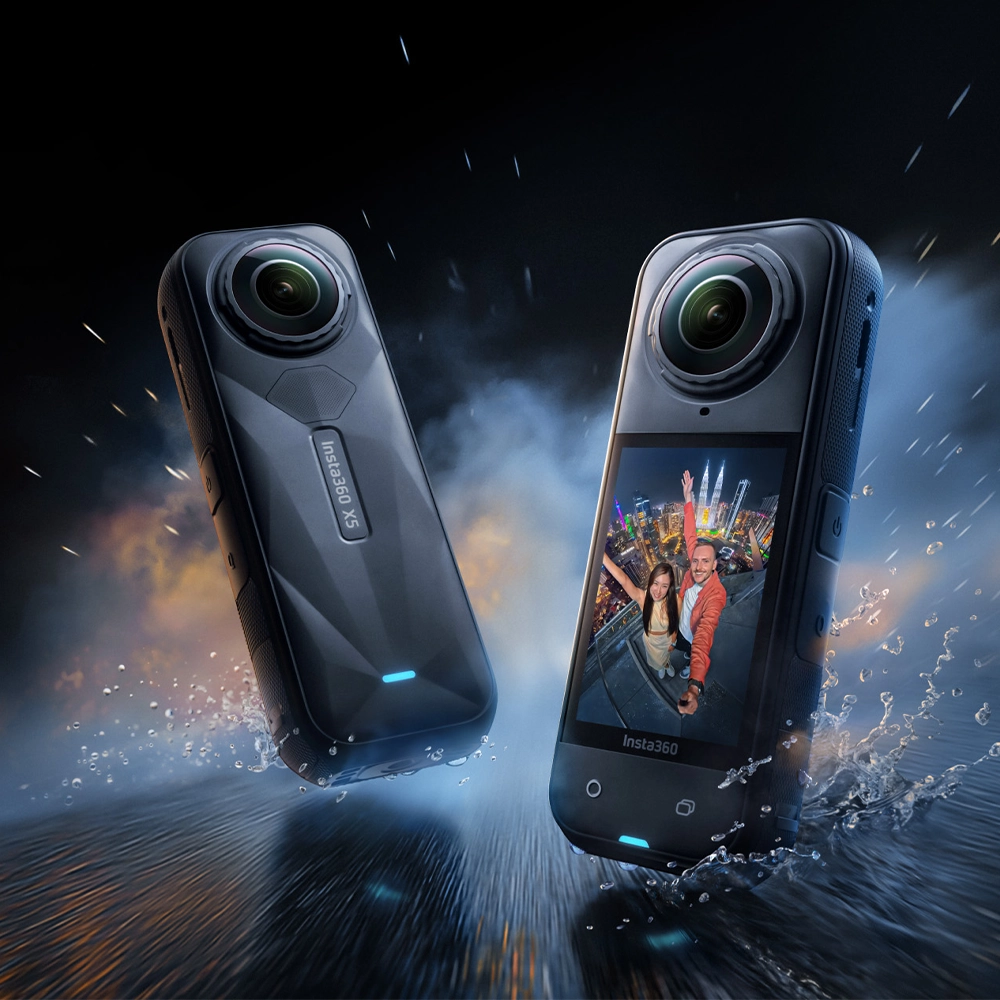 X5は大型1/1.28インチセンサーと超高速トリプルAIチップを搭載。8K30fps 360度動画撮影を実現し、従来モデルよりセンサー面積が144%拡大しました。