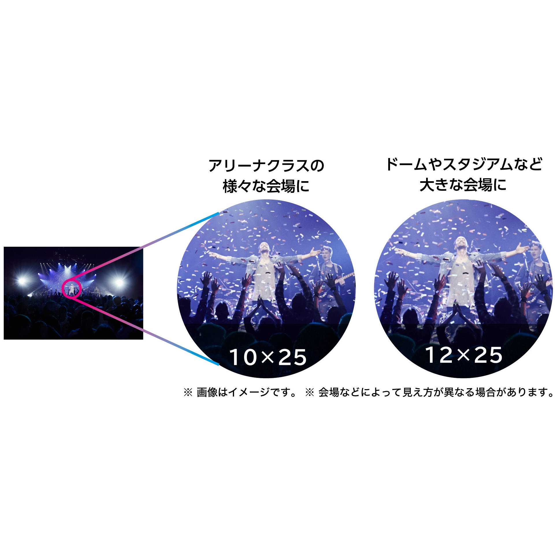 オールマイティーに使える10倍、より大きな会場向けの12倍(当製品)、2つの倍率をご用意。会場の規模や好みに合わせてお選びいただけます。