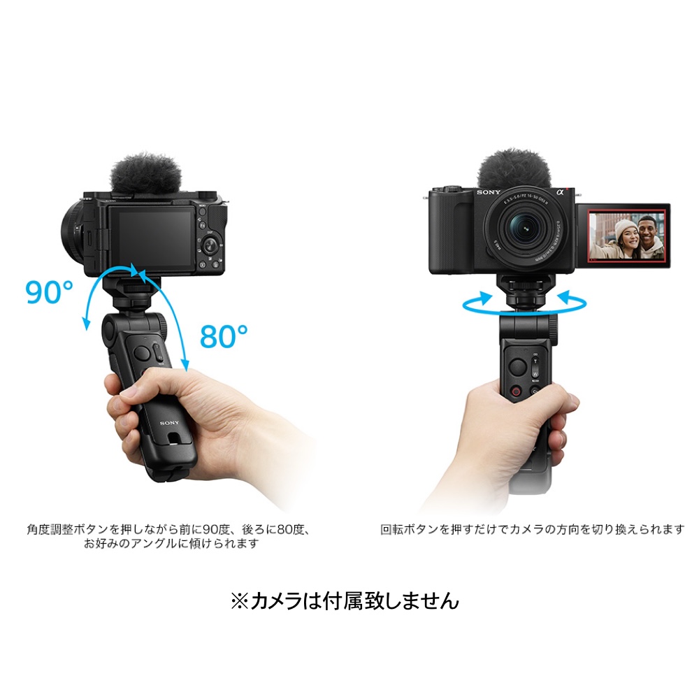 ホールド性に優れたグリップ形状により、カメラを装着した状態でも安定したハンドリングを実現。手持ちでカメラを操作しながら、自由に角度を調整できます。また、便利なボタンでヘッドのロックを解除できるので、カメラを外向きから自撮り撮影まで、スムーズな動きで切り換えられます。