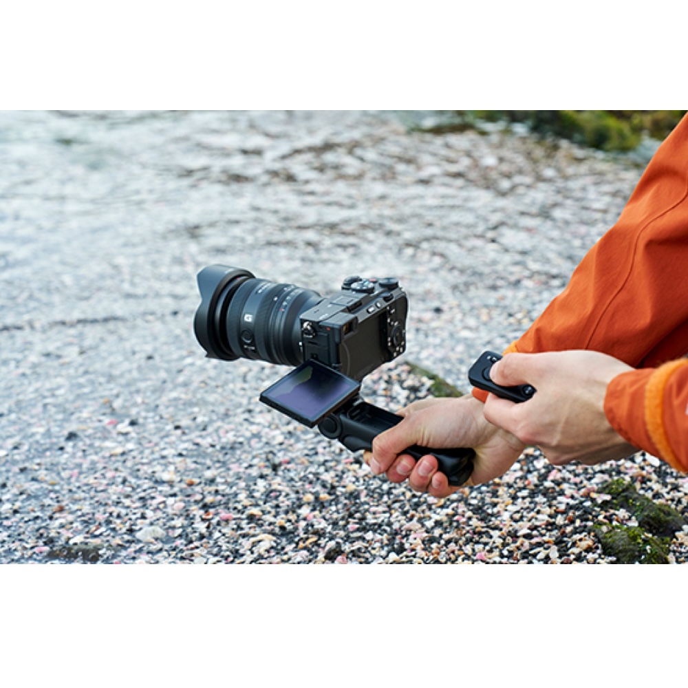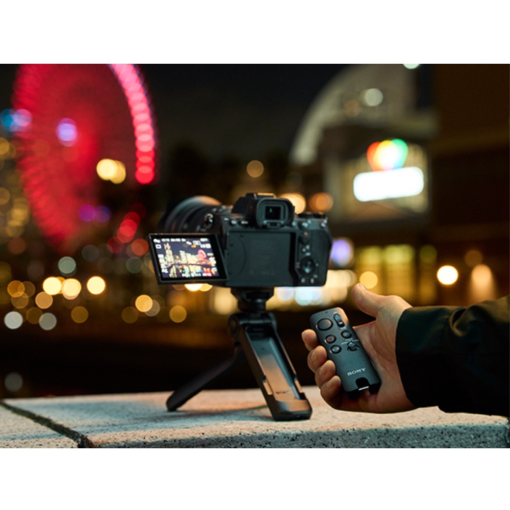 着脱可能なリモートコントローラーによって、離れた場所からシャッターが切れるため、手ブレを抑えた撮影が可能。また、主要なカメラ操作のボタンが指元に配置されているため、グリップの状態でも快適に使用できます。グリップの状態での手持ち撮影はもちろん、すばやく三脚の状態に切り換えて、安定した写真や動画、グループショット、風景写真、ソロ撮影などを行えます。