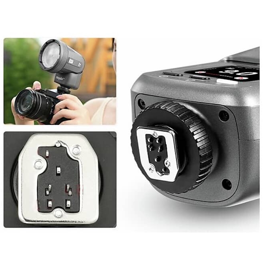 JINBEI独自のインテグレーテッドホットシューを装備し、この一台でCanon / Nikon / SONY / FUJIFILM / Panasonic / OM SYSTEM(OLYMPUS) 各社主要カメラのTTLオートとHSSハイスピードシンクロに対応可能です。
