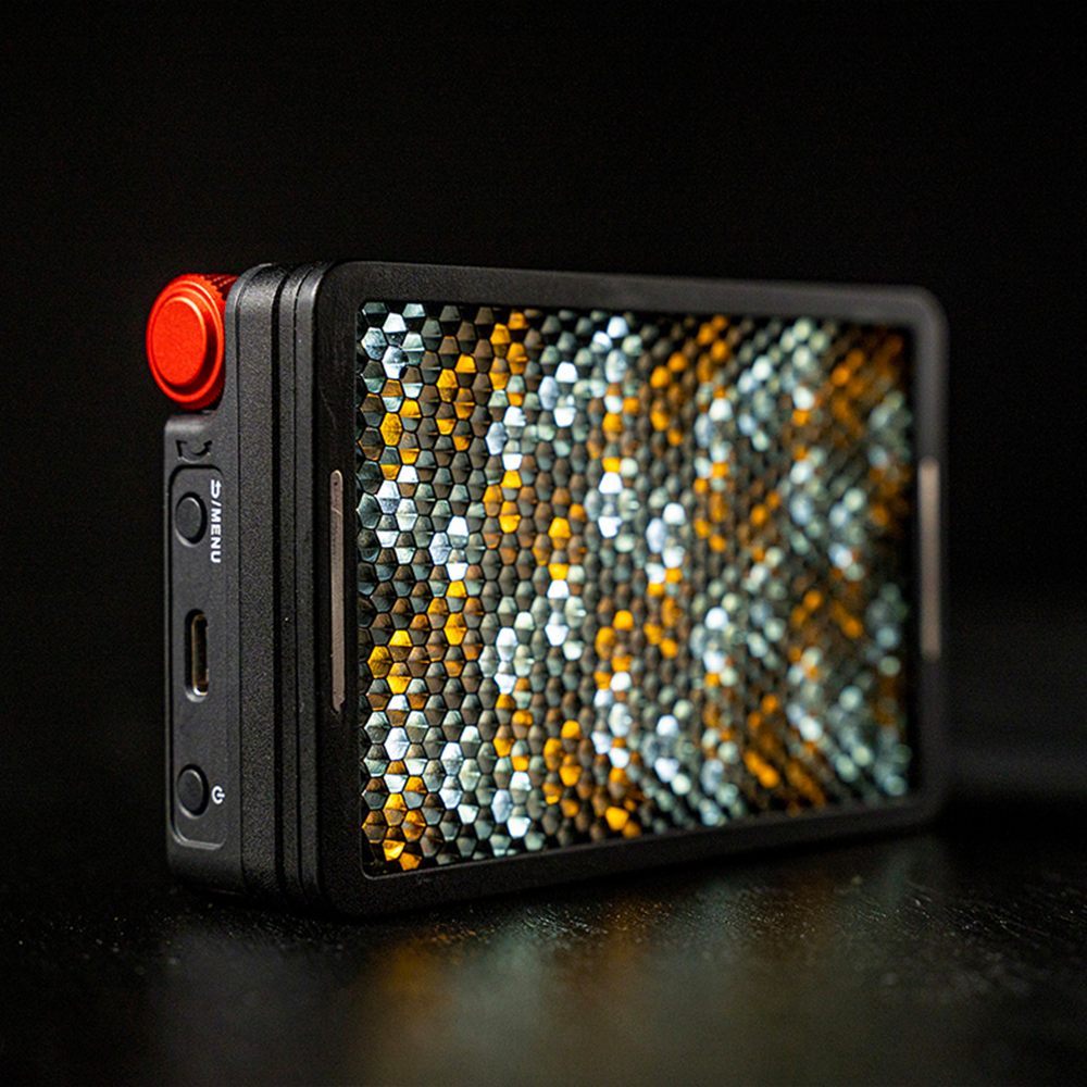 カードサイズのコンパクトな形状に、防塵・防滴に対応したIP65規格、前面もマグネット式になり専用ハニカムグリッドとディフューザー2種がワンタッチで着脱できるなど、さらにプロフェッショナルの現場で便利に使用できる機能を搭載しました。