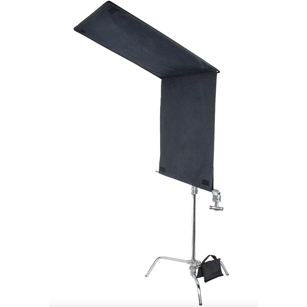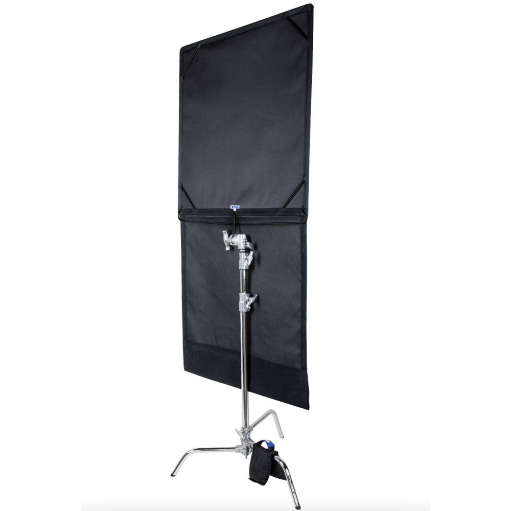 背面にはスタンドにしっかり固定できるベルクロが縫い付けられており、一端にはロッドやパイプを通せる巻き込みエッジがあるため、重りを入れてフラッグをまっすぐ保つことができます。屋外の強い日差しや、スタジオ内での余分な光のコントロールに最適です。