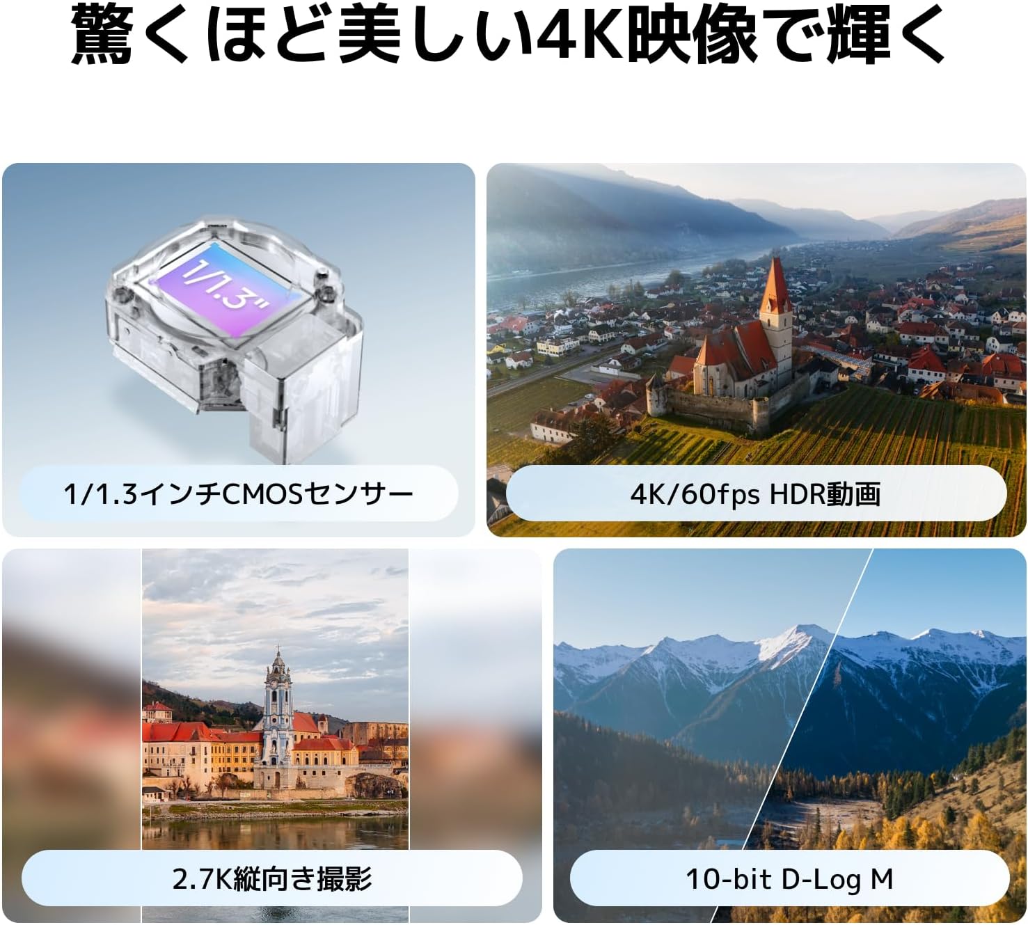 4K/60fps HDRと10ビットD-Log Mで、日の出や日の入りの豊かなディテールを表現。そして、4K/100fpsのスローモーションで、ハイライトの瞬間を詳細に捉えます。