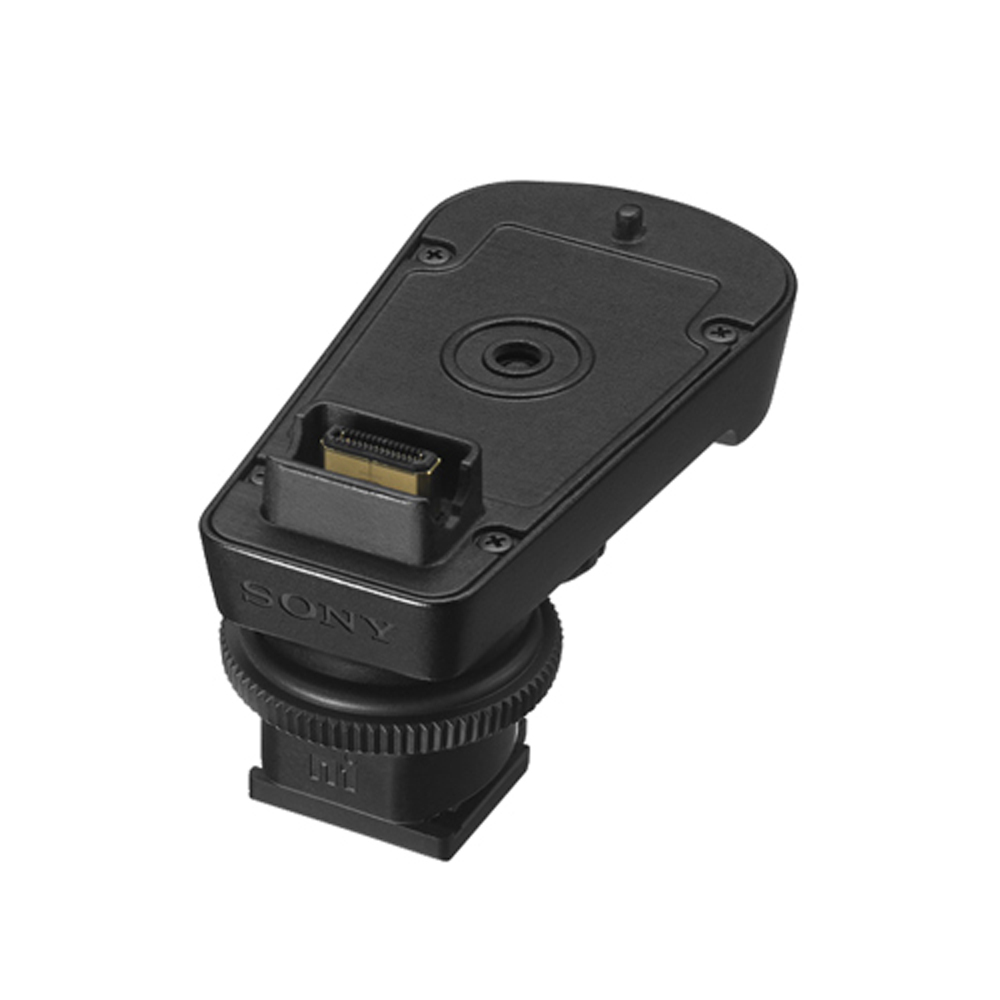 カメラのホットシューにワイヤレスマイクを取り付けるためのアダプター。